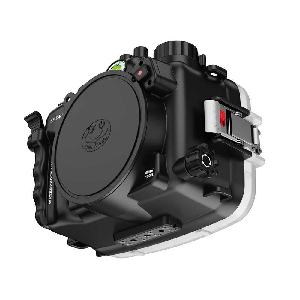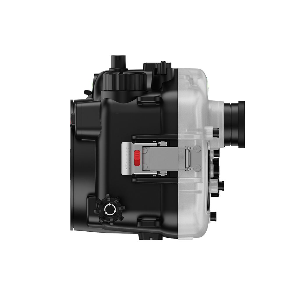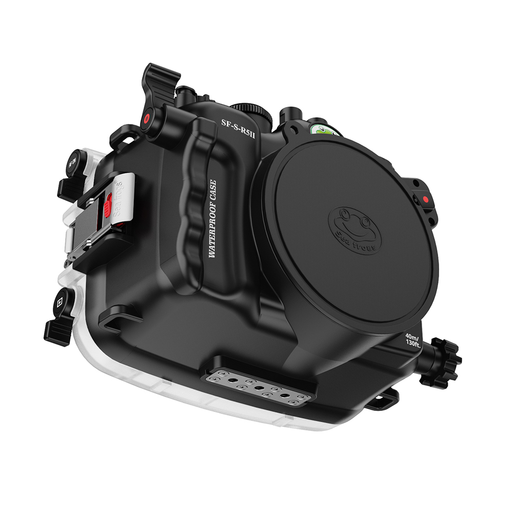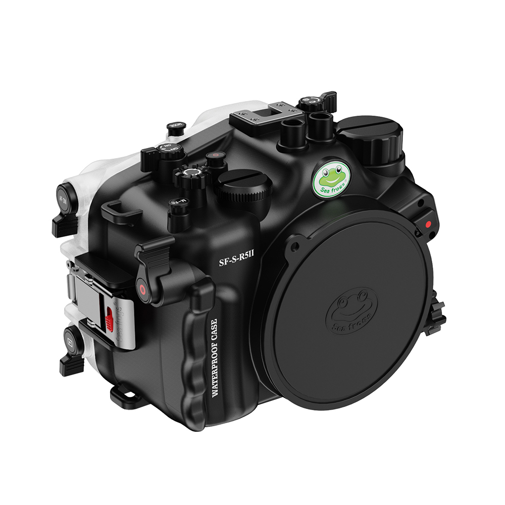 Подводный бокс Sea Frogs для Canon EOS R5 II сделан из прочного поликарбоната. Байонет под сменные порты для объективов Type-1. Глубина погружения 40 метров. Подключение внешних вспышек через оптоволоконный кабель или электрический разъем. Контроль зума или ручной фокусировки. Имеет датчик протечки со звуковым и световым сигналом. На боксе также установлен оптический видоискатель. Удобная кнопка спуска затвора типа "курок". Вакуумный порт для проверки бокса на герметичность. Надежность бокса обеспечивают два металлических замка с предохранителями и два о-ринга на крышке и корпусе бокса. Также бокс имеет крепление типа "холодный" башмак и снизу два штативных гнезда.